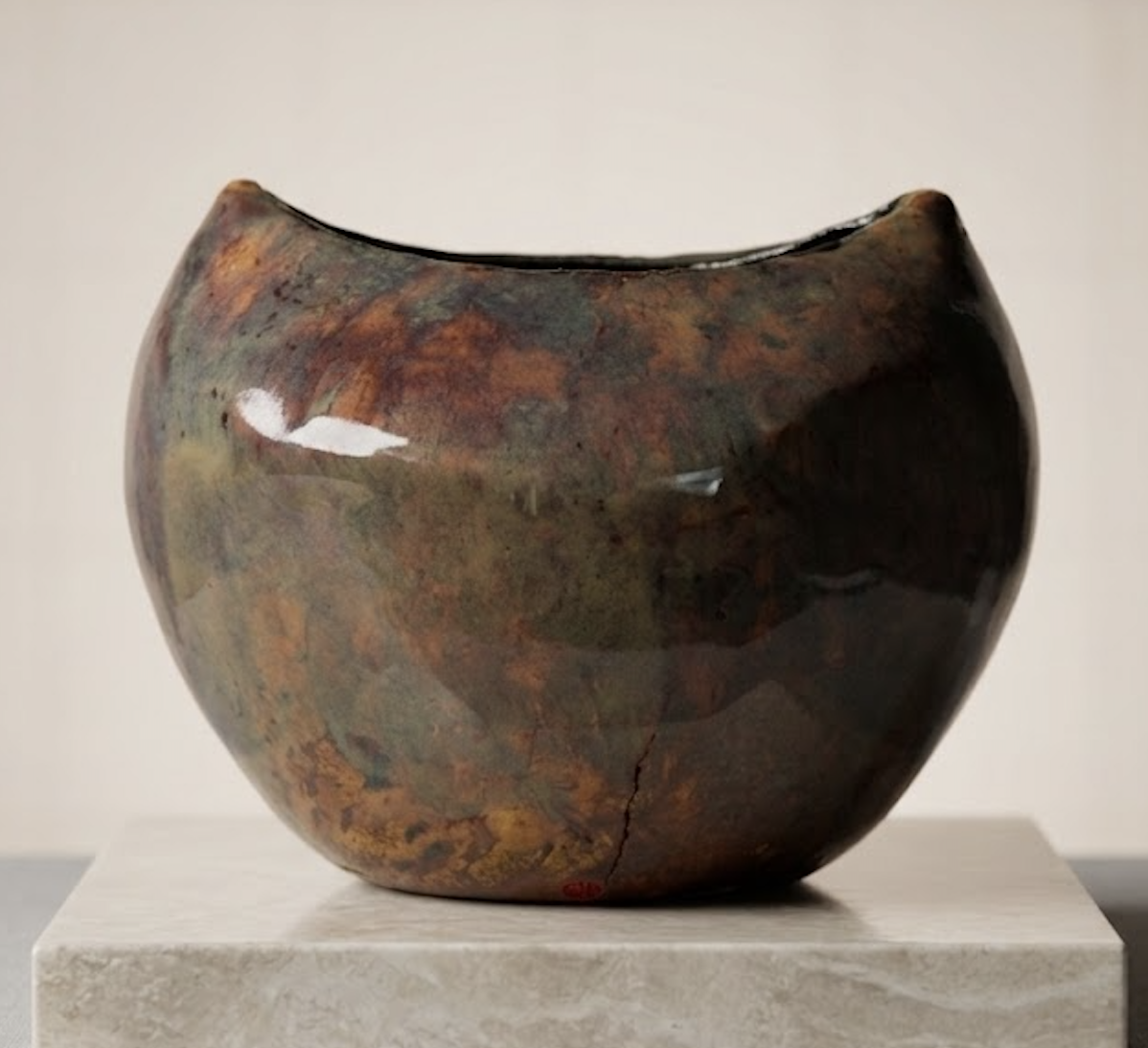 Entdecke die Vase „Patina“ von Hofmann Ceramics. Ein intuitiv geformtes Unikat aus Berlin, das durch erdige Rost- und Moostöne jeden Raum erdet. Handarbeit, die bewegt.